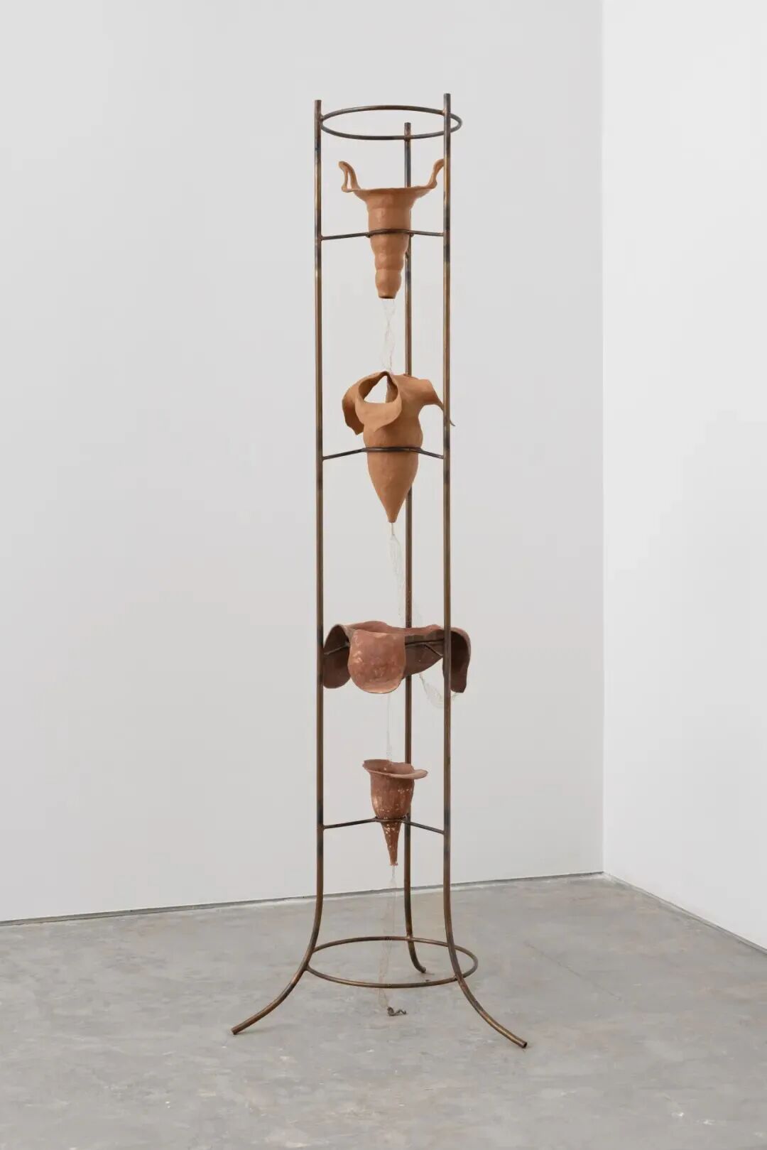 解群,《花型產(chǎn)房》,2025,雕塑,紅陶、雜土、夾砂白陶、紫銅,210 × 66 ×66 cm。圖片來自藝術(shù)家。