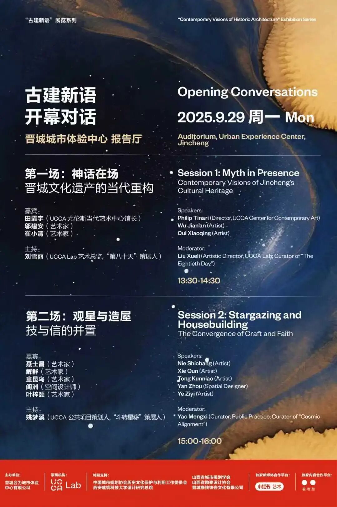 本系列開幕對話面向行業(yè)專業(yè)人士、院校師生,以及熱愛文化遺產(chǎn)與當(dāng)代藝術(shù)的公眾開放,觀眾可在“晉城城市體驗中心”抖音號、“UCCA尤倫斯”視頻號免費(fèi)預(yù)約參與直播。兩場對話是一次與國內(nèi)外知名藝術(shù)家、館長、策展人 面對面的文化沙龍,旨在共同探索古建與當(dāng)代藝術(shù)之間的互動,思考傳統(tǒng)文化如何在當(dāng)下煥發(fā)新的生命力。