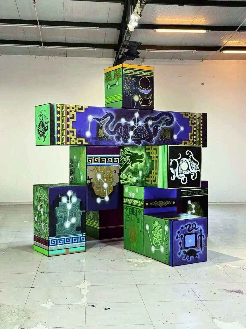本場對話以晉城的在地經(jīng)驗為背景,探討當(dāng)代藝術(shù)如何回應(yīng)和轉(zhuǎn)譯古老的建筑智慧與觀星傳統(tǒng)。晉城的廟宇、戲臺與古建不僅承載了地方生活方式,也體現(xiàn)了“技藝”與“信仰”的雙重秩序:仰觀天象以定農(nóng)時,俯身造屋以安身立命。藝術(shù)家們將結(jié)合各自的實踐展開討論:解群從陶與身體出發(fā),重塑地母意象與女性的生命力;童昆鳥借鑒古建構(gòu)件與甲骨符號,將裝配語言轉(zhuǎn)化為空間敘事;葉梓頤通過特殊觀測記錄“七月流火”“三星在戶”等天象,將古代天文記載的文本轉(zhuǎn)化為當(dāng)代影像語言;聶士昌通過晉城唐鐵非遺的鑄造技藝,把星盤刻度、月相、北斗與二十八星宿轉(zhuǎn)譯為機(jī)械與神話共存的系統(tǒng);閻洲則將東漢六博棋與八角星圖延展為空間構(gòu)造,引導(dǎo)觀眾在連環(huán)動線上感知符號與身體的關(guān)系。
