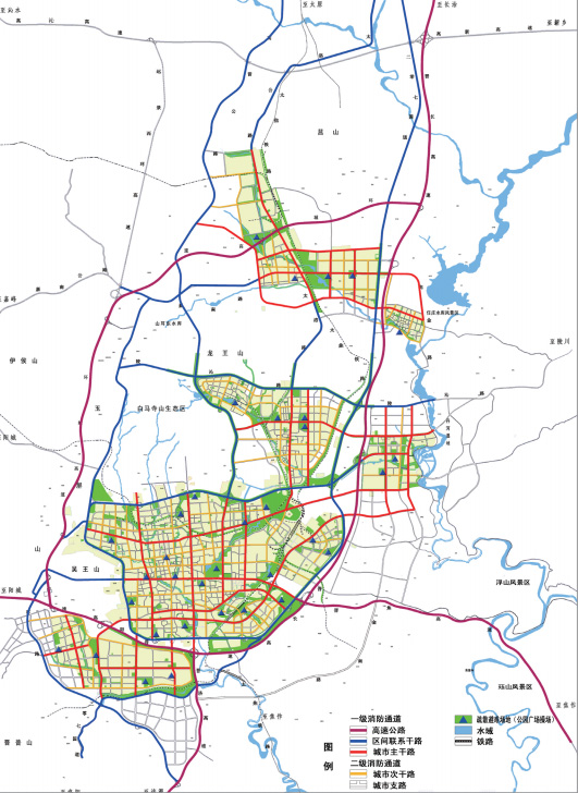 規(guī)劃引入城市火災風險分區(qū)的概念,將城市分成三個大類地區(qū):城市重點消防地區(qū)、城市一般消防地區(qū)和消防隔離帶及避難疏散場地,對城市各類功能區(qū)提出了具體布局要求,對各類消防設施進行了合理布局,應用 GIS 軟件,建立晉城市消防設施數(shù)據(jù)庫,形成基于 GIS 的消防站布局優(yōu)化模型,結合城市規(guī)劃區(qū)重點防火單位、建筑物的安全等級、城市用地性質、人口密度、建筑高度、消防抗災指標等,進行火災風險分區(qū),按照時間約束條件(5 分鐘到達火災現(xiàn)場),對消防站布局進行網(wǎng)絡分析調整,進一步優(yōu)化消防站布局。