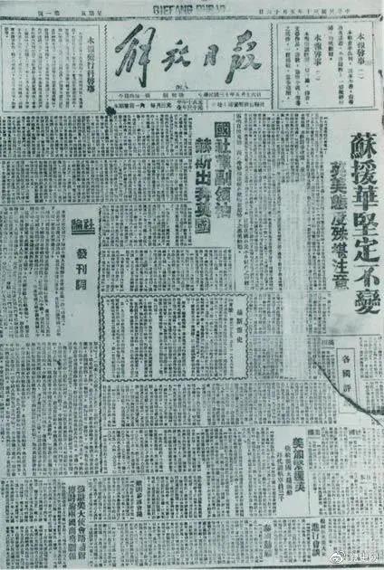 圖為1941年5月16日在延安創(chuàng)刊的中共中央機(jī)關(guān)報《解放日報》。